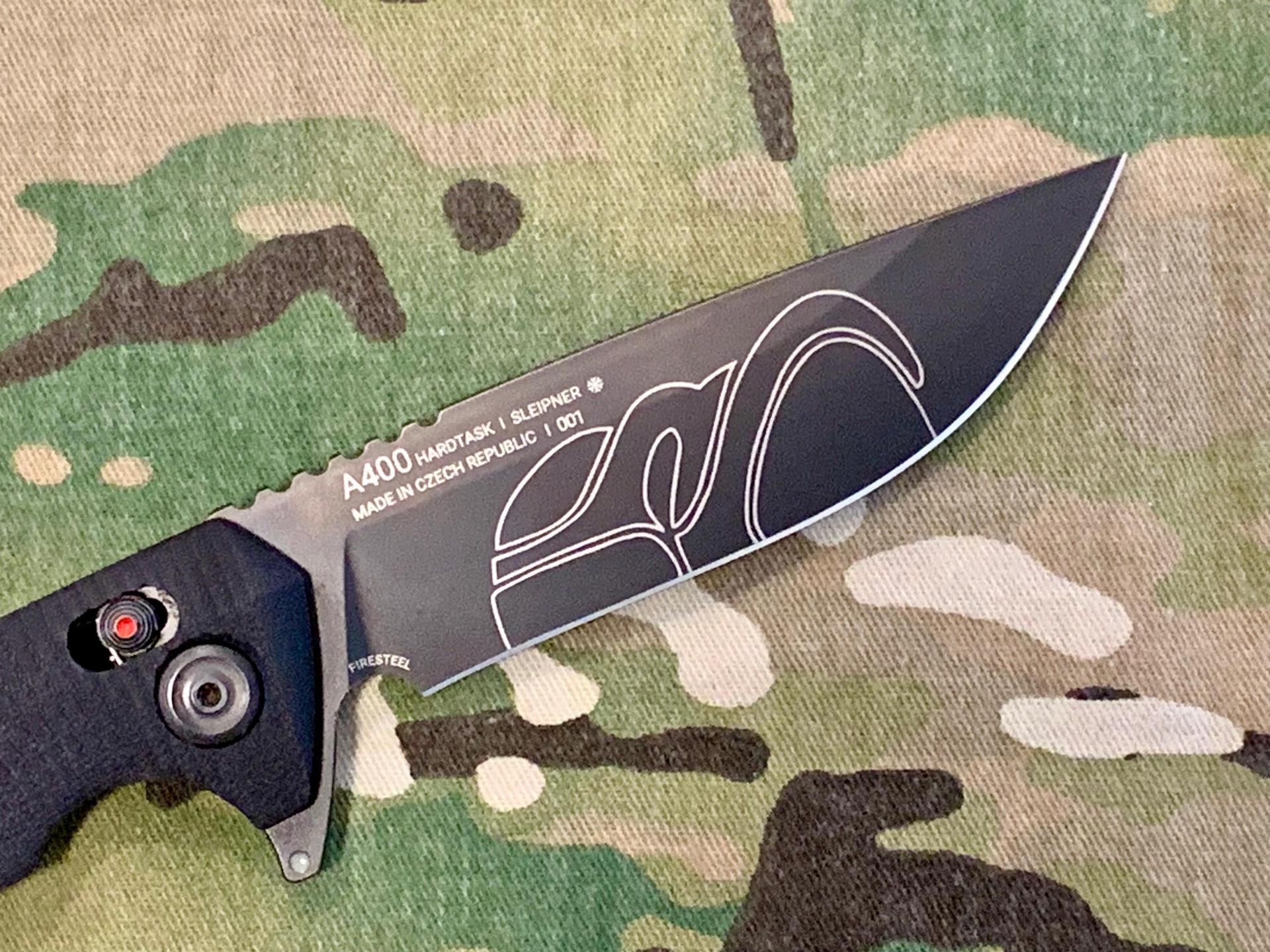 Uddeholm Sleipner je vysoce legovaná ocel velmi dobrá ocel pro všechny druhy povrchových úprav. Tato ocel sice není korozivzdorná, ale díky vyššímu obsahu chromu se na čepeli nevytváří hloubková rez, ale vytvoří se zajímavá patina, která dává noži velmi zajímavý vzhled. Korozi odolává o něco více než ocel K110. Je výborná na lovecké, sekací a bushcraft nože a pro nože, kde je vyžadován vysoký výkon a odolnost čepele.