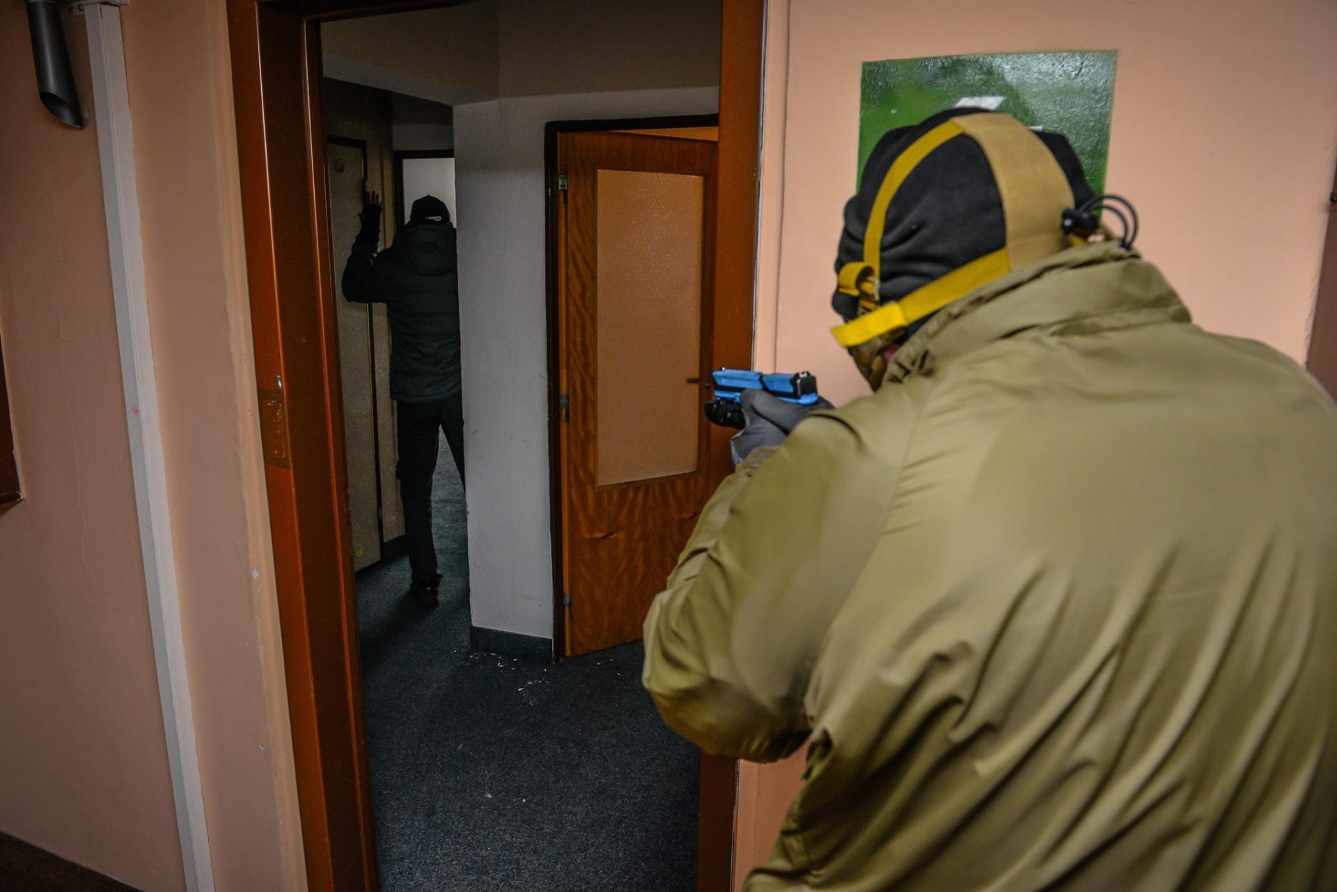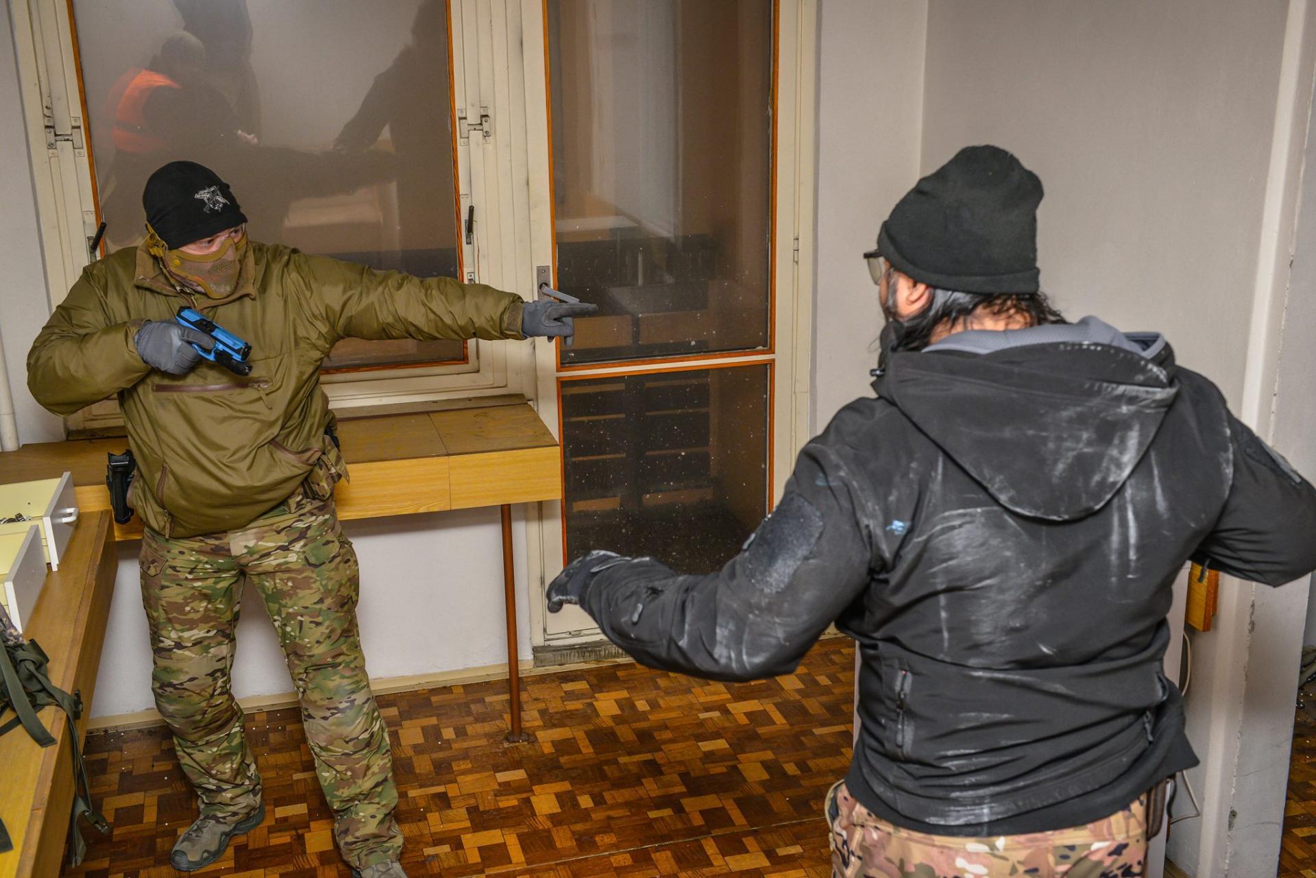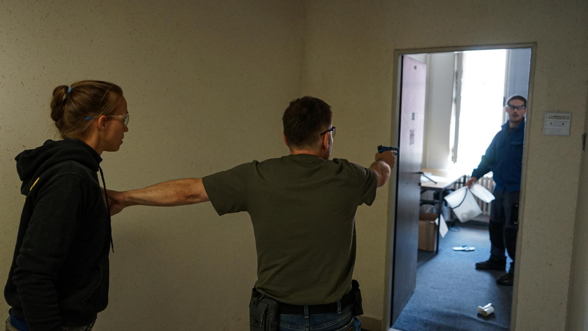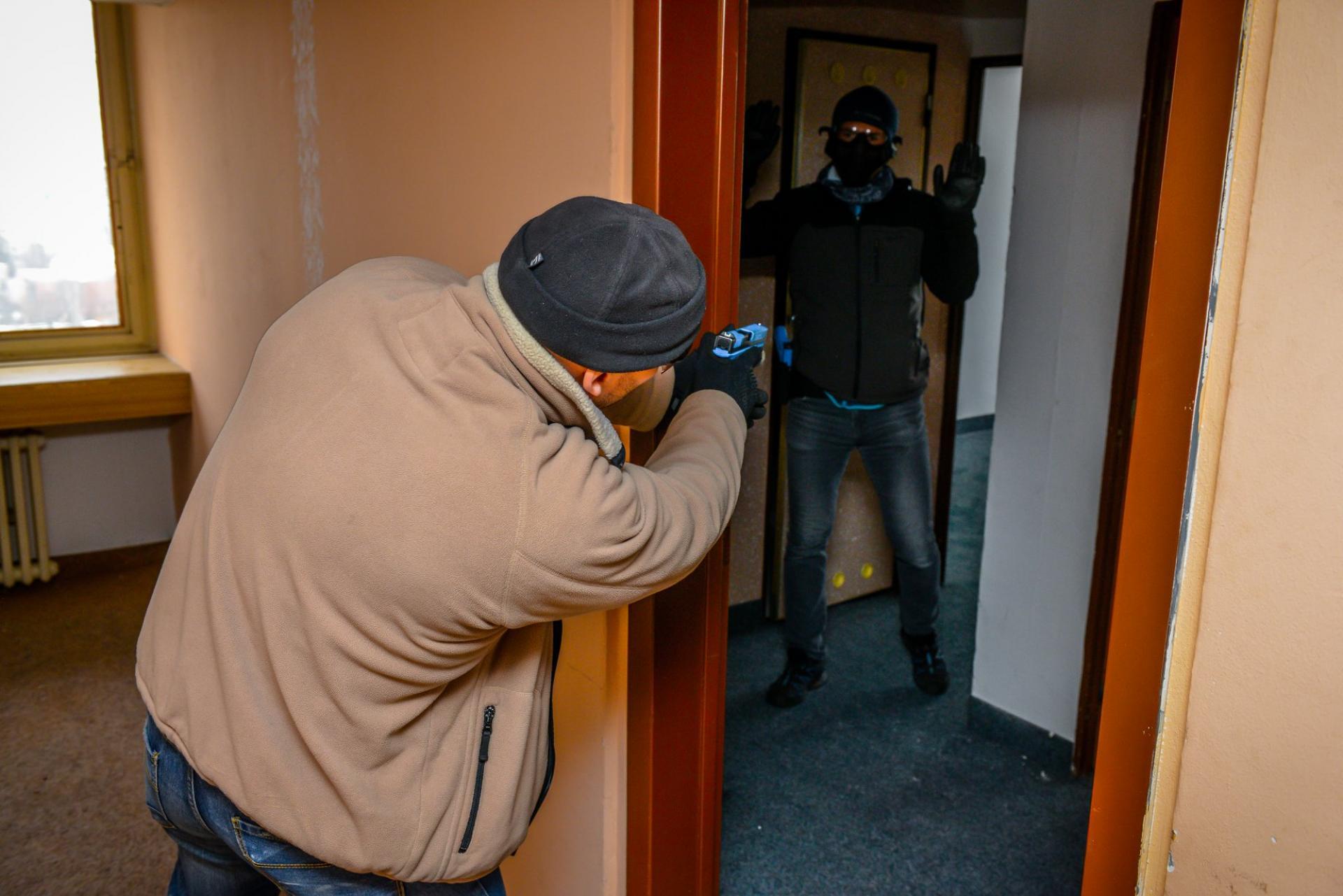 Základní teorie, nutná obrana a krajní nouze, vykrajování místnosti, vstup do bytu a místnosti, postup na schodišti, postup chodbou, zadržení a zajištění pachatele, reakce na nestandardní situace, barikádování vlastního obydlí, nesčetně modelových situací za použití zbraní FX Simunition.