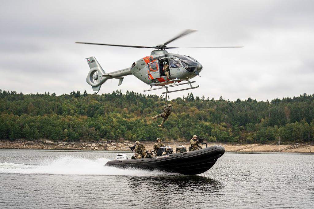 Pohodlné civilní nebo taktické oblečení a pevná outdoorová nebo sportovní obuv (obojí přizpůsobeno aktuálnímu počasí a venkovním teplotám), slaňovací rukavice určené pro lano fast rope, pracovní sedací nebo celotělový úvazek, ochranné brýle, opasek, případně nosič plátů nebo jakoukoliv kompletní balistickou ochranu včetně přilby, sumky na zásobníky do zbraně a nákoleníky. Kurz ale rozhodně absolvujte v oblečení a výbavě co nejvíce odpovídající vašemu dennímu nošení nebo práci bez nutnosti dokupovat taktickou výstroj. Ta není na tomto kurzu povinná. Pokud byste rádi vyzkoušeli moderní balistickou výstroj, po kliknutí na vámi zvolené datum tohoto kurzu si můžete vybrat zapůjčení některého z nabízených nosičů plátů včetně balistických panelů nebo špičkovou balistickou ochrannou přilbu od firmy Galvion. Všichni účastníci budou námi vybaveni profesionální záchrannou samonafukovací vestou a budou zajišťováni profesionální záchranářskou posádkou na člunu v těsném závěsu za vrtulníkem.