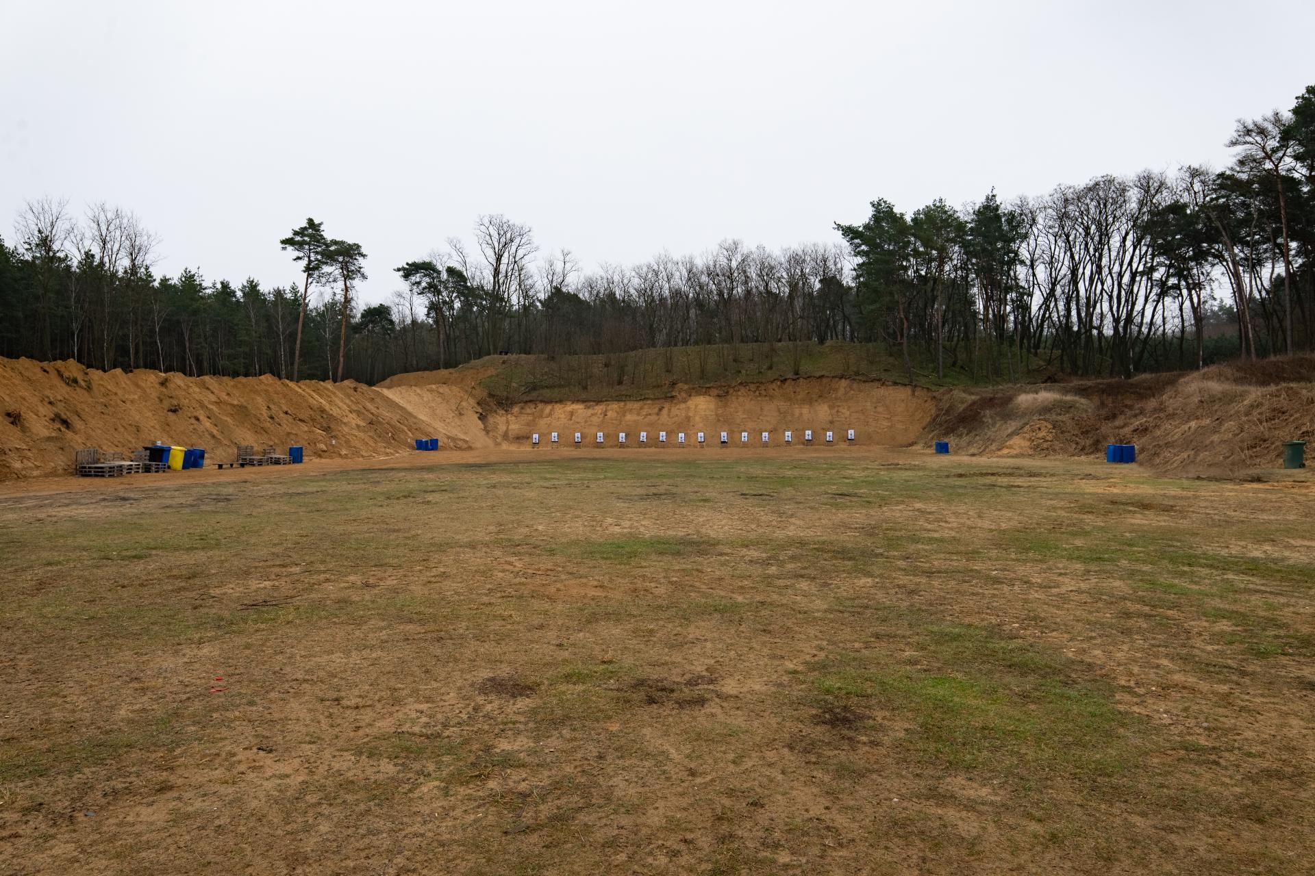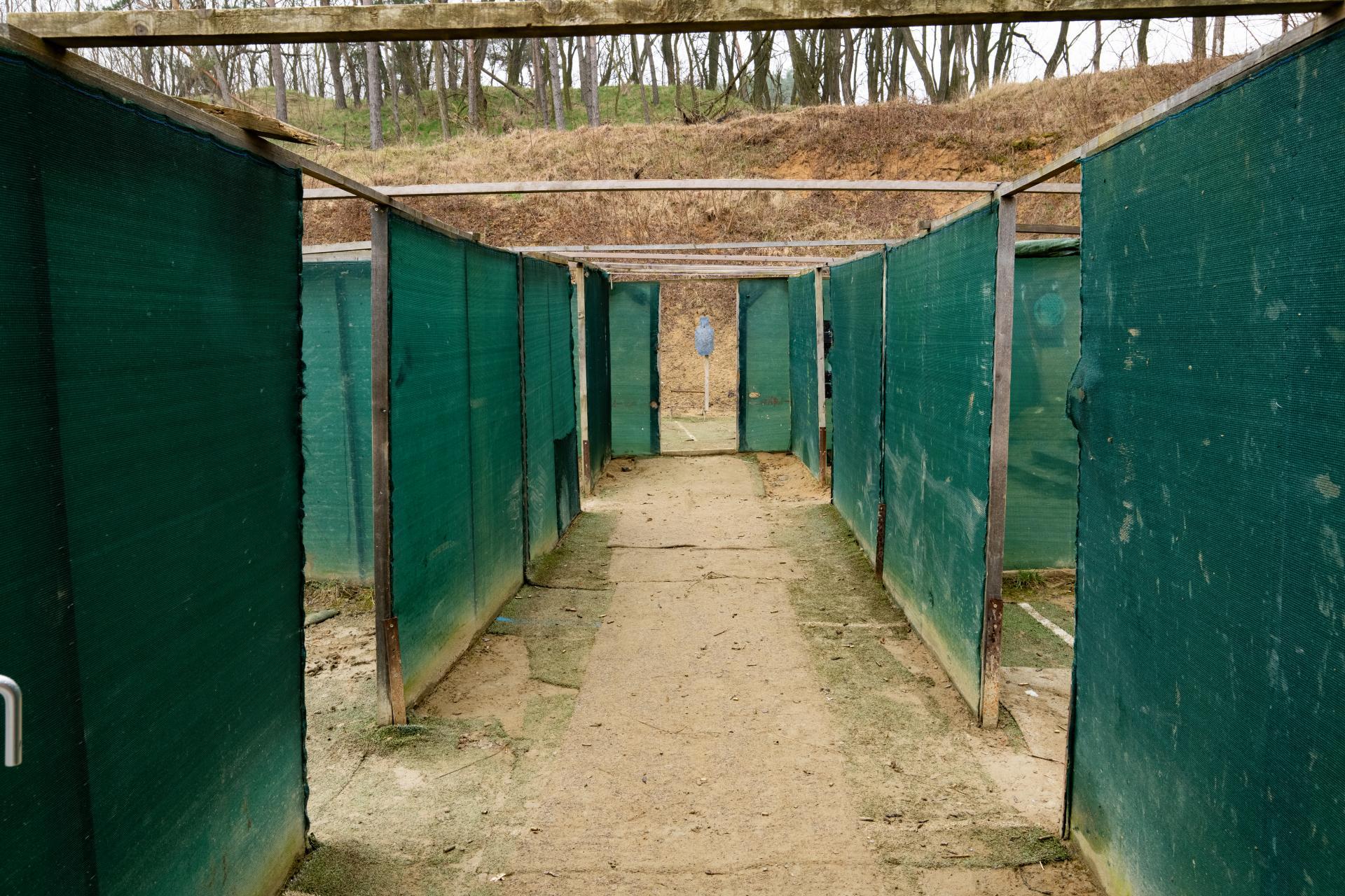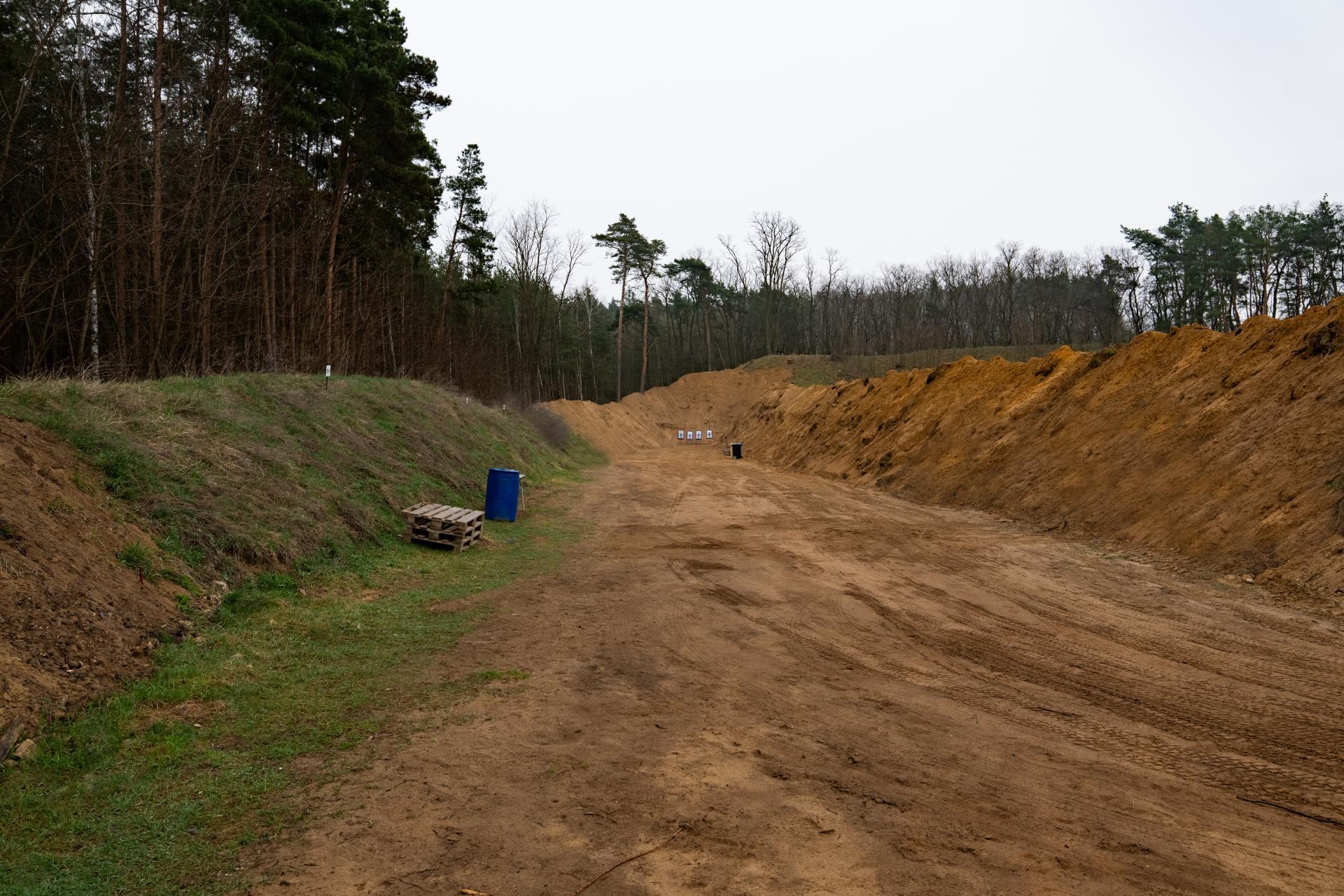 Olesko shooting range is an outdoor commercial shooting range near Prague. It builds upon a tradition of more than two hundred years of operation as a military shooting range in the Travcicky Forest in the village of Olesko, Litomerice district. This shooting range served the military for training from the time of the construction of the Terezin fortress until the end of the 1990s, when the military garrison in Terezin was abolished. Since January 1, 2017, we have been offering one of the longest and most modern shooting ranges in the Czech Republic, which can be easily reached by driving on the D8 highway within 30 minutes from Prague. There are a total of eleven independent shooting bays with variable shooting distances available. The sections are designed for shooting from shooting positions located anywhere in the shooting area, with a limitation of pistol and rifle calibers from .22 to .50. Shotgun shooting is also allowed, and under legal conditions, shooting with automatic weapons is also permitted. Specifically, the shooting range has section A with a length of 300 meters and a shooting area width of 40 meters for a maximum of 20 shooters. Section B, with a length of 100 meters and a width of approximately 10 meters, with a maximum of 6 shooters, is mainly used for zeroing precision rifles or shooting at longer distances with self-loading rifles and carbines. Furthermore, there are several smaller shooting sections marked with letters C to F, with lengths between 18 and 30 meters and shooting area widths of approximately 10 to 30 meters, and a maximum of 6 to 14 shooters on one firing line. Section G is the smallest on the entire shooting range, but it still provides comfortable space for several shooters for their own shooting training or a small private lesson with an instructor. Newly, sections H with a length of 50 meters, I and J with a length of 30 meters, and K with a length of 20 meters are also available, all with a width of 10 meters and a maximum of 10 shooters on one firing line. Shooting in three directions, i.e. 180 degrees, is allowed on sections B to K. Shooting at 360 degrees is even possible on sections C and D, and shooting at 250 degrees is possible on sections H, I, J and K.