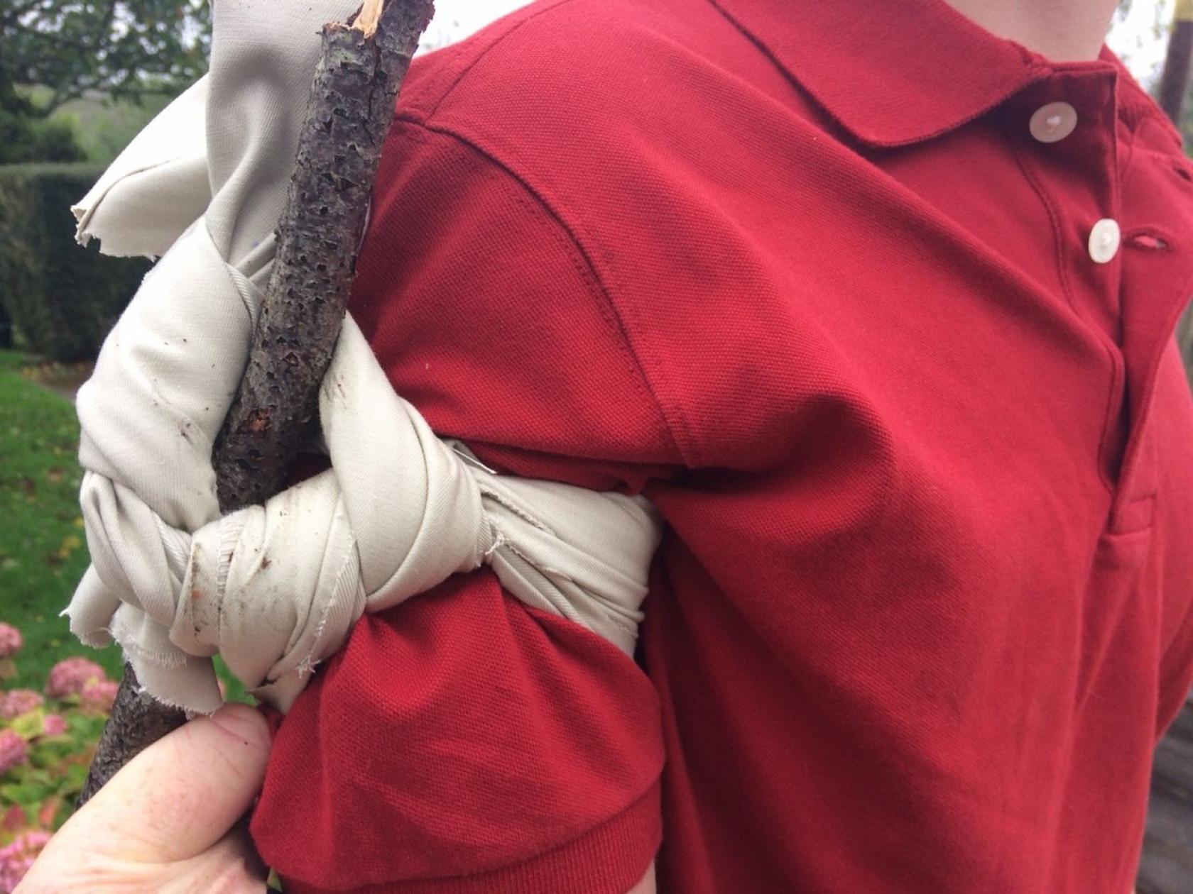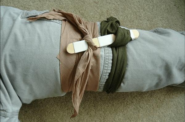 Writings, comfortable civilian, tactical clothing or a combat uniform and sturdy outdoor or duty boots (both adapted to the current weather and outdoor temperatures), an old T-shirt, a sweatshirt or jacket to tear and destroy, a belt, plastic bag or tapes, a scarf, a car belt or any similar items that can be used for first aid.