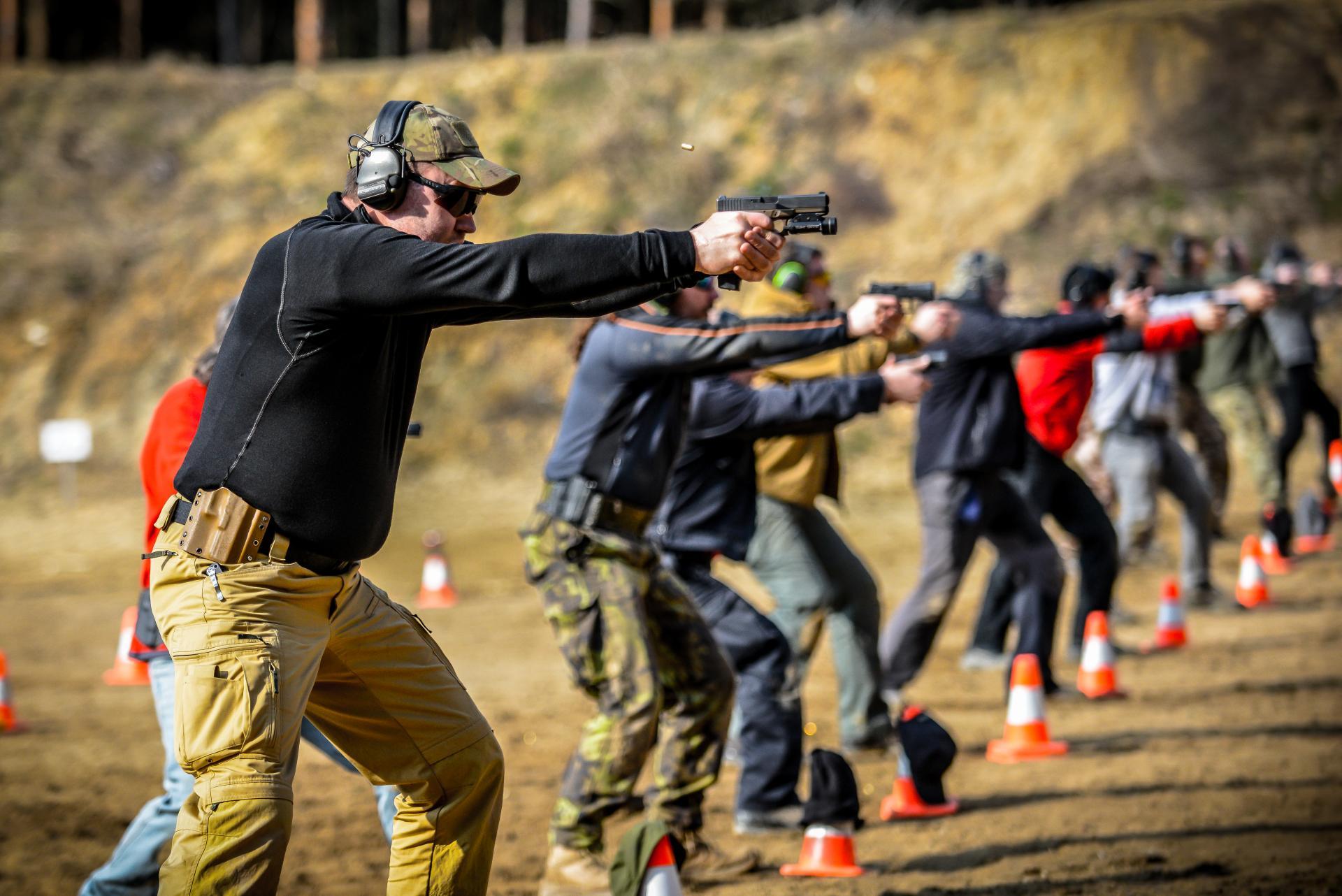 Comfortable civilian or tactical clothing and solid outdoor or sports shoes (both adapted to the current weather and outdoor temperatures), belt, high-quality and safe kydex or plastic hand gun holster placed on the strong hand side and covering the trigger guard, holster for the magazine, shooting goggles, hearing protection (headphones, earbuds ...). If you intend to shoot with ammunition other than the standard 9 mm Luger or .45 ACP on this course, please also bring 5 pieces of dummy ammunition designed for dry training and weapons handling.