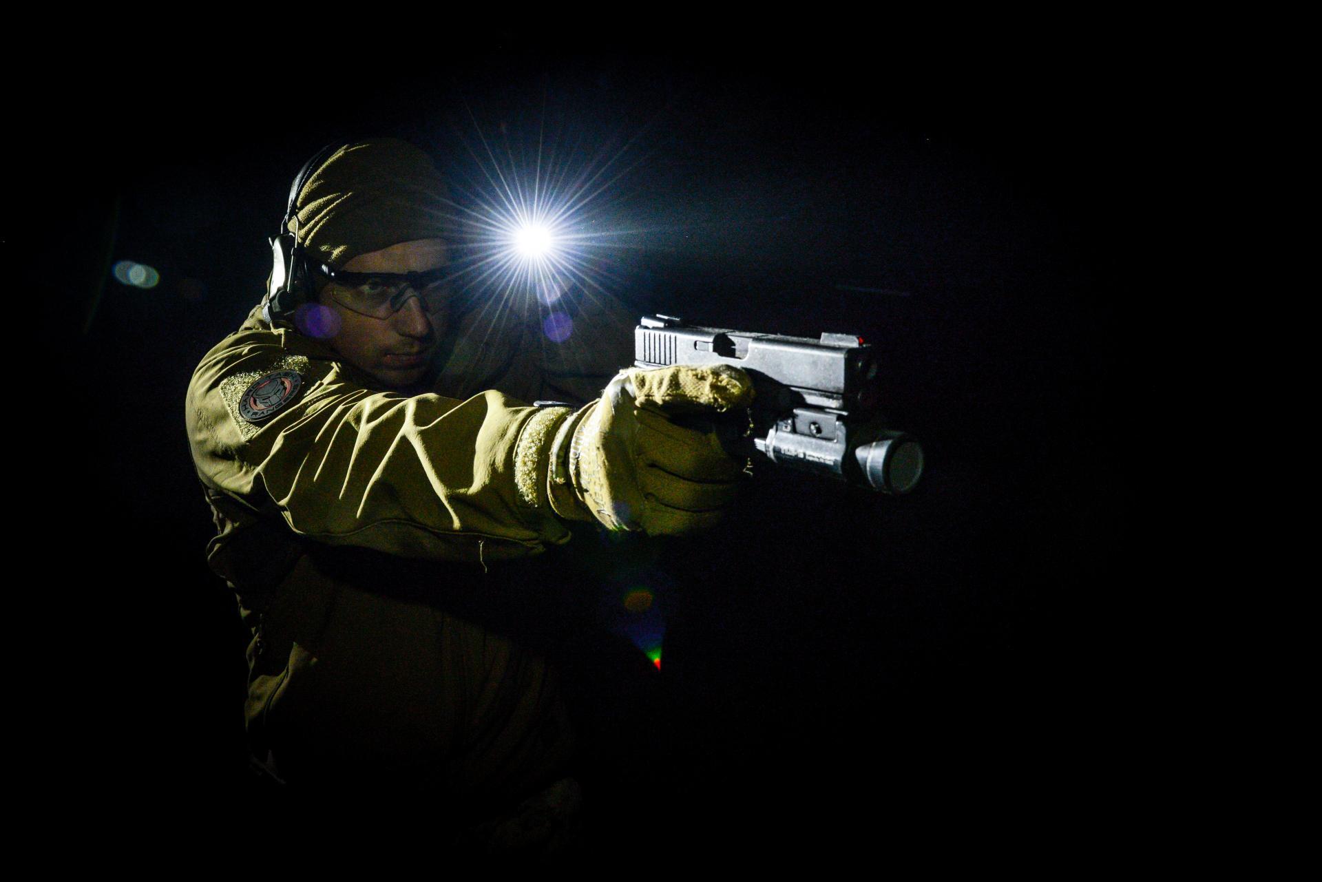 A quick refresher of the most important techniques and procedures in the dark and gloom with a flashlight followed by many scenarios using our FX Simunition training weapons.